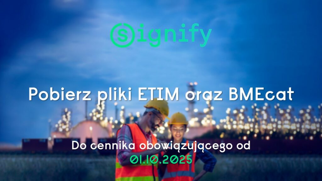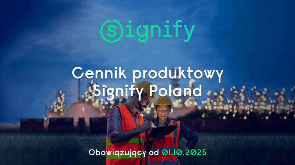 Uprzejmie informujemy, że z dniem 1 października 2025 r. zacznie obowiązywać nowy cennik Signify Poland Sp. z o.o., który zastąpi dotychczasowy z 1 marca 2025 r. Aktualizacja obejmuje zmiany cenowe wybranych produktów, wprowadzenie nowości oraz usunięcie pozycji wycofanych z oferty w II i III kwartale 2025 roku.