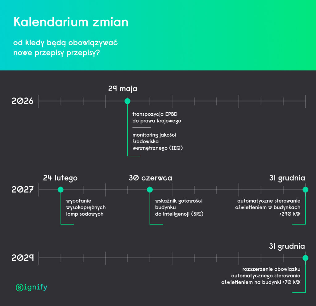 31 grudnia 2029 – rozszerzenie obowiązku automatycznego sterowania oświetleniem na budynki >70 kW